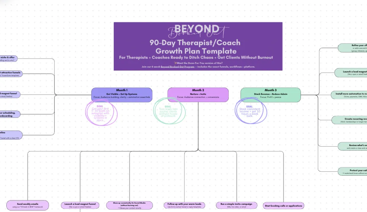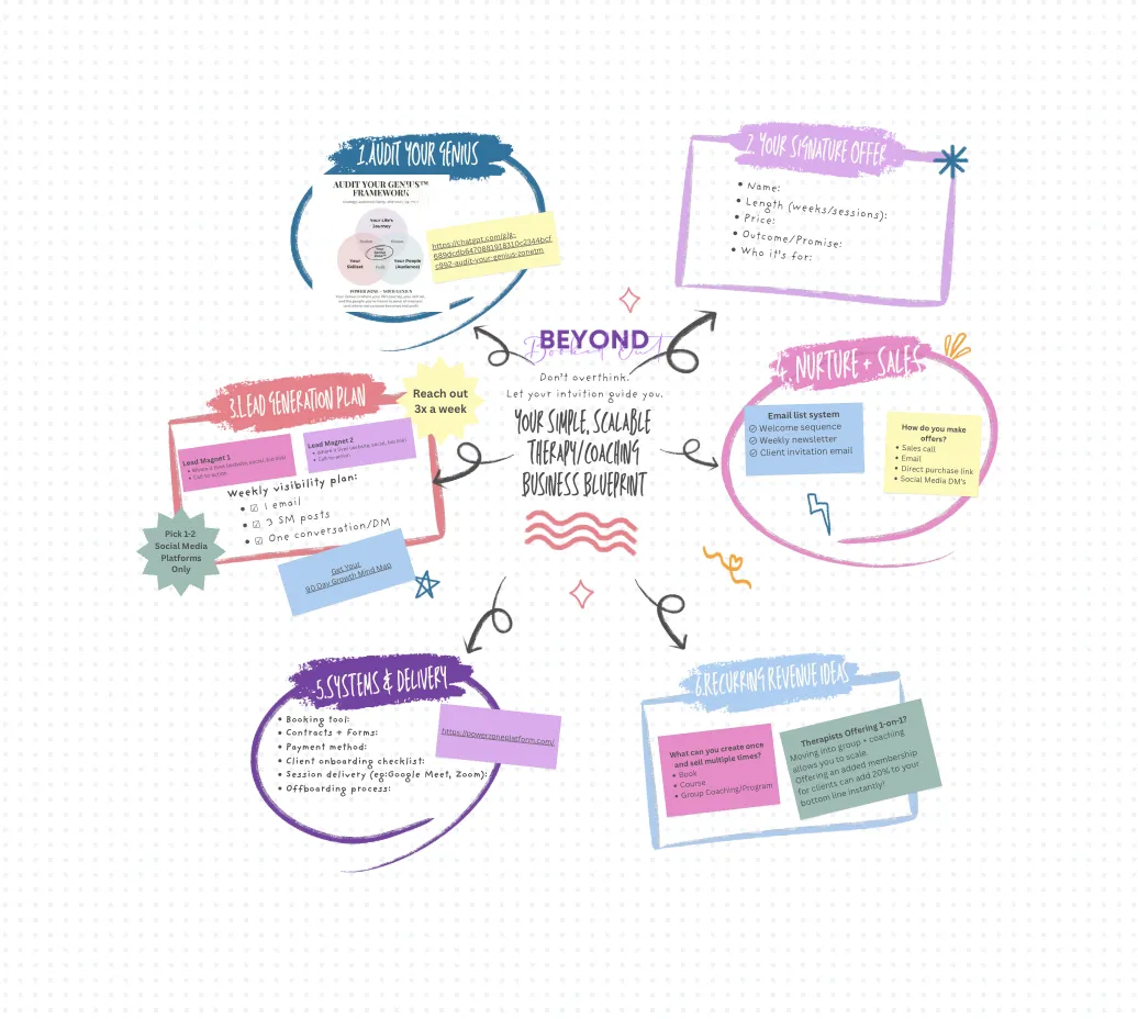 We aren’t teaching generic business fluff. Everything in this toolkit is tailored to how therapists and coaches actually grow: ethically, strategically, and without burning out. This is about scaling with soul, not selling your sanity.